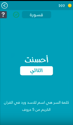 كلمة السر هي اسم للأسد ورد في القران الكريم مكونة من 5 احرف إجابة Me