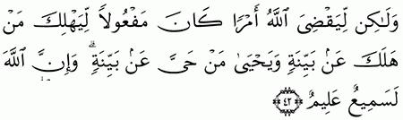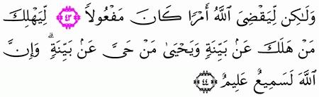 أمرا كان مفعولا مرتان في القرآن في سورة الأنفال ٤٢ و الأنفال ٤٤ Quran Verses Holy Quran Verses