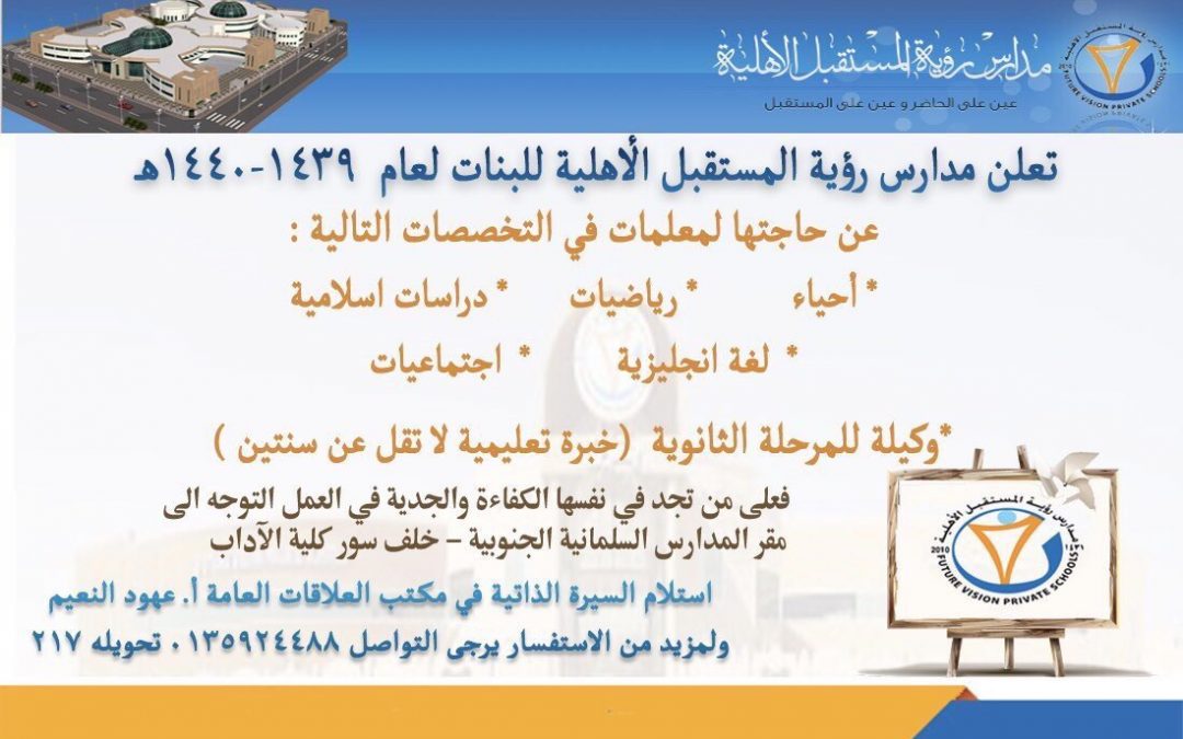 مدارس اهليه بمكه تحتاج معلمات 1439